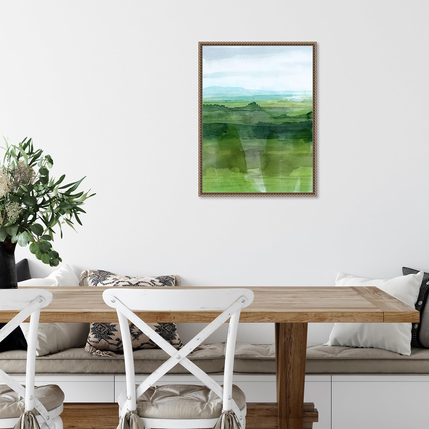 Grace Popp’s masterful use of watercolor techniques brings depth and texture to this piece, with layers of varying green tones that mimic the natural gradients of the earth. The soft blending of colors creates a harmonious flow, inviting viewers to lose themselves in the gentle curves of the landscape. This Emerald Green Wall Art is more than just a decorative piece; it’s an invitation to experience the quiet beauty of nature from the comfort of your home.