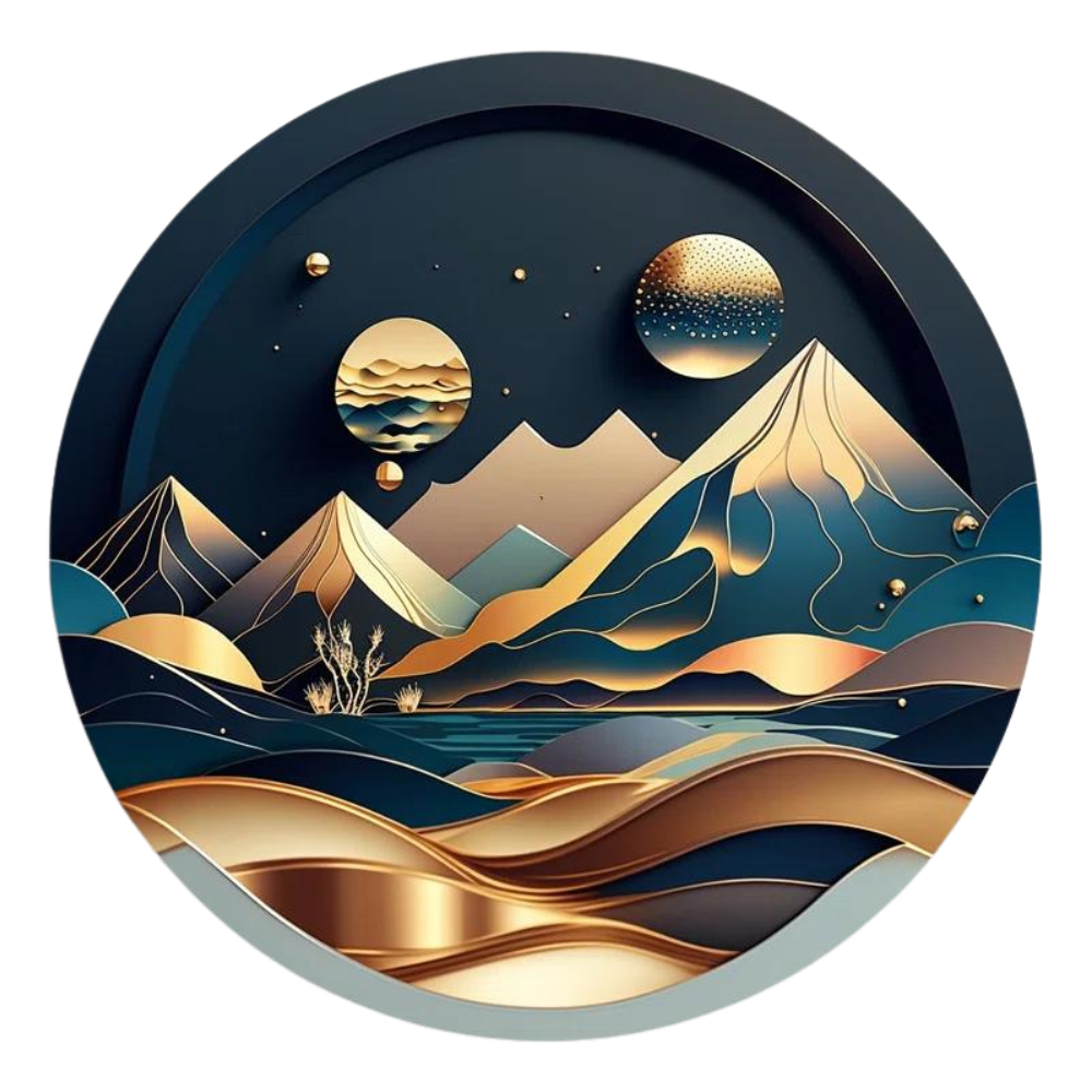 Transform your living space into a breathtaking sanctuary with the “Captivating Golden Mountain Metal Wall Art.” This exquisite piece features a stunning abstract representation of mountains, beautifully intertwined with golden accents and deep, calming hues of navy and teal. The circular design adds a modern twist to traditional landscape art, making it a standout piece in any room.