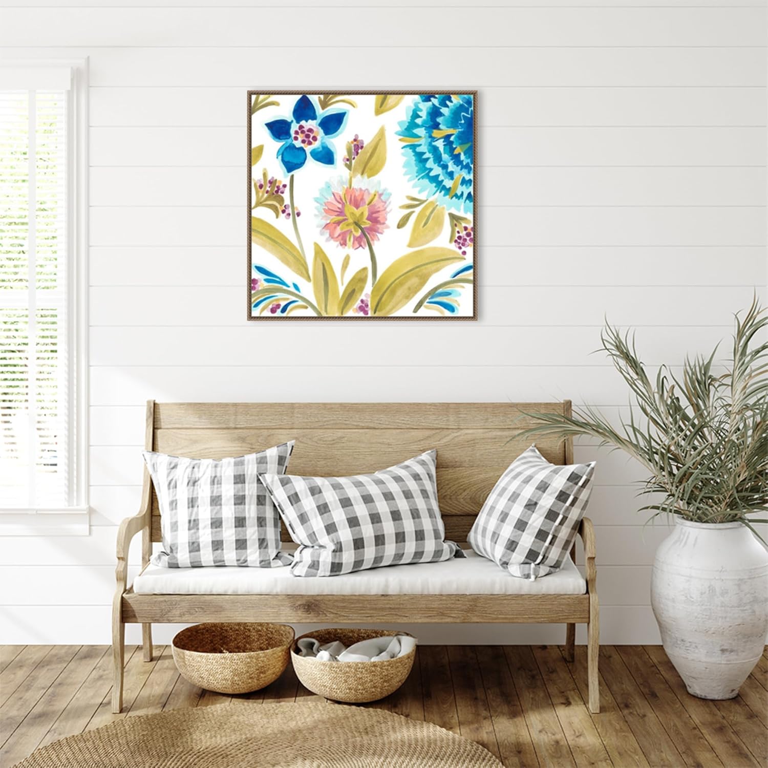 Introducing the Abbey Floral Tiles VIII – Charming Floral Mosaic Wall Decor by June Erica Vess, a masterpiece that brings the delicate beauty of nature into your home. This exquisite piece features a vibrant arrangement of hand-painted floral tiles, each adorned with intricate designs and lush colors. The harmonious blend of blues, greens, and pinks creates a soothing and inviting atmosphere, perfect for adding a touch of elegance to any room. The bold yet graceful floral patterns draw the eye, inviting you to explore every detail.