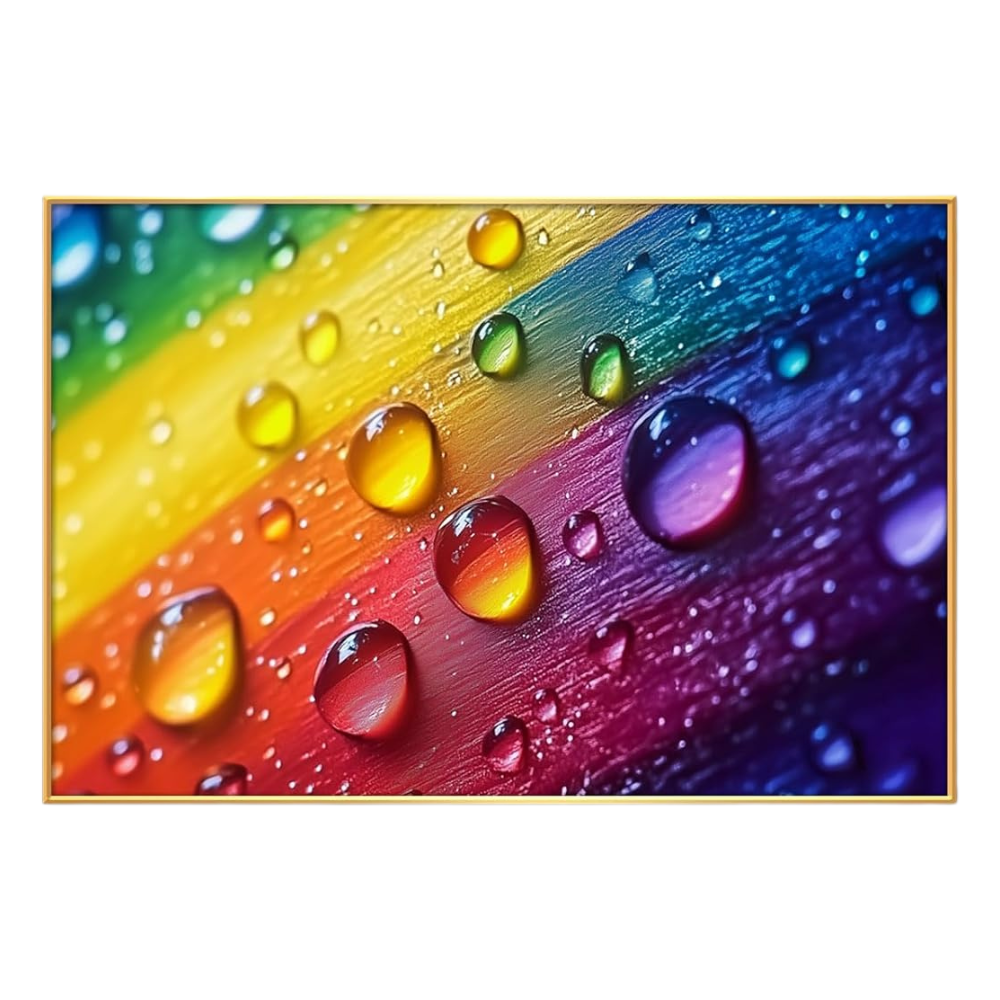 The Colorful Rainbow Wall Decor features a stunning spectrum of colors, from rich reds and bright yellows to deep blues and purples, all seamlessly blended together in a surreal, dreamlike composition. The water drops, rendered in exquisite detail, appear to hover above the surface, catching the light and adding a three-dimensional effect that draws the viewer in. Whether you’re looking to brighten up a living room, bedroom, or creative space, this artwork will bring a sense of wonder and vibrancy to your environment.