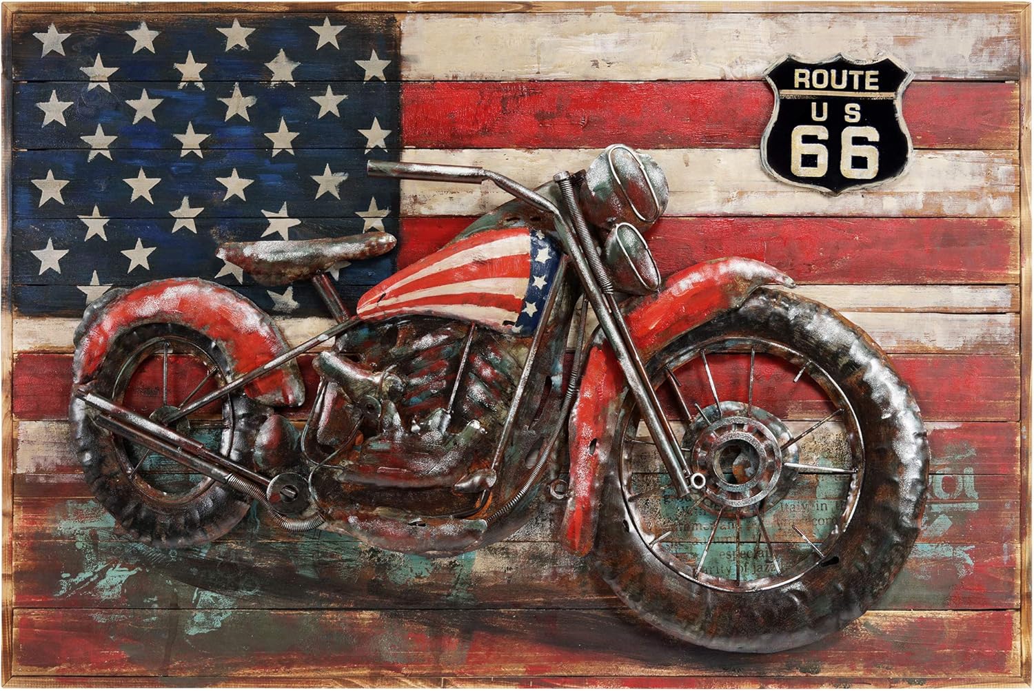 Route 66 Motorcycle Metal Wall Art by Empire Art Direct – Rustic American Flag Wall Decor