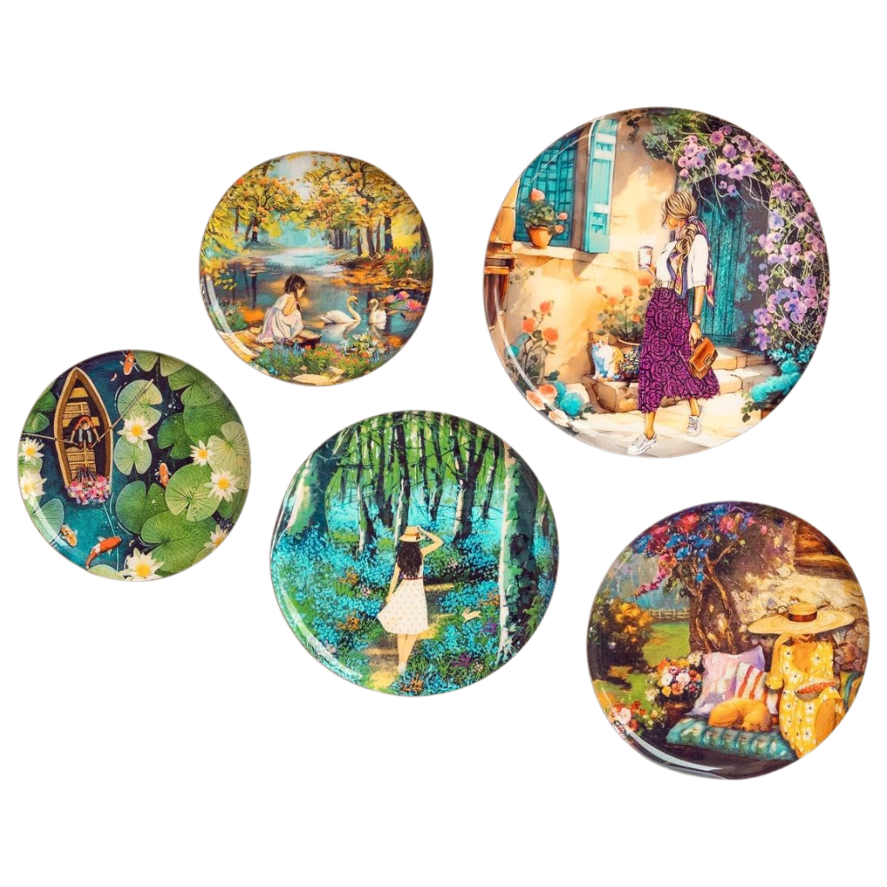 The Fantasy Floral Wall Plates feature a mesmerizing array of vibrant colors, with each plate telling its own story. The soft greens of a mystical forest, the rich yellows of sunflowers in full bloom, and the deep blues of a serene lake combine to create an extraordinary visual display. The intricate floral designs paired with dreamlike, fantasy-inspired scenes make these plates a perfect choice for bohemian, eclectic, or even farmhouse-style interiors. The vivid color palette adds life and energy to your space, whether you hang them in a living room, dining area, or hallway.