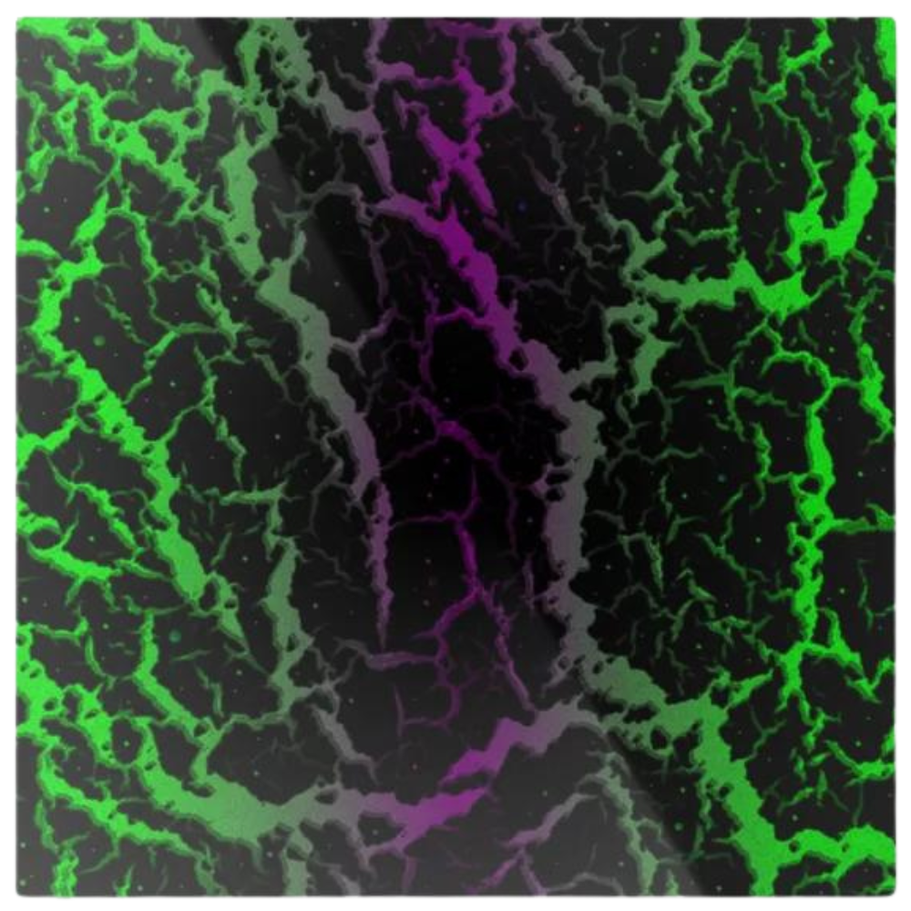 Introducing the Futuristic Otherworldly Metal Wall Art: Cracked Space Lava, a piece that transcends the boundaries of traditional decor. This mesmerizing artwork blends vibrant green and purple tones with a cosmic, cracked-lava design that evokes the mysterious beauty of an alien landscape. The striking contrast of colors against the deep, dark background gives this piece a surreal and otherworldly appeal that will captivate the imagination of all who behold it.