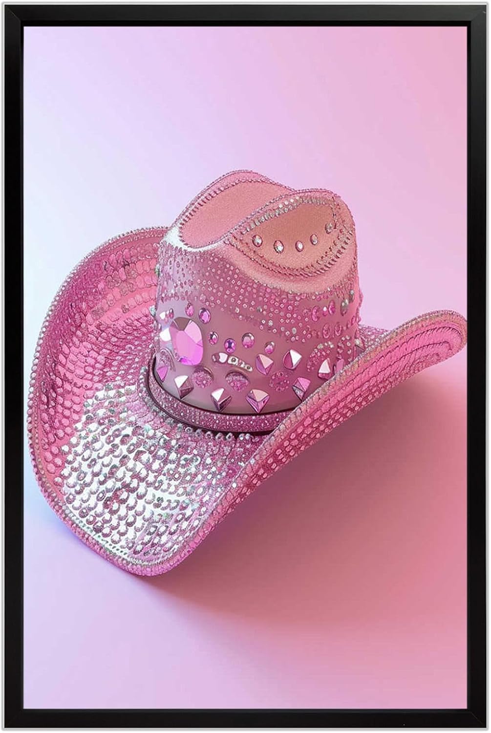Crafted with high-quality materials, this print is designed to withstand the elements of time. The inks used are UV resistant, ensuring the colors remain bright and clear without fading, while the premium canvas provides durability and longevity. This makes the ‘Glamorous Pink Rhinestone Cowboy Hat’ not only a stunning piece of art but also a lasting investment.