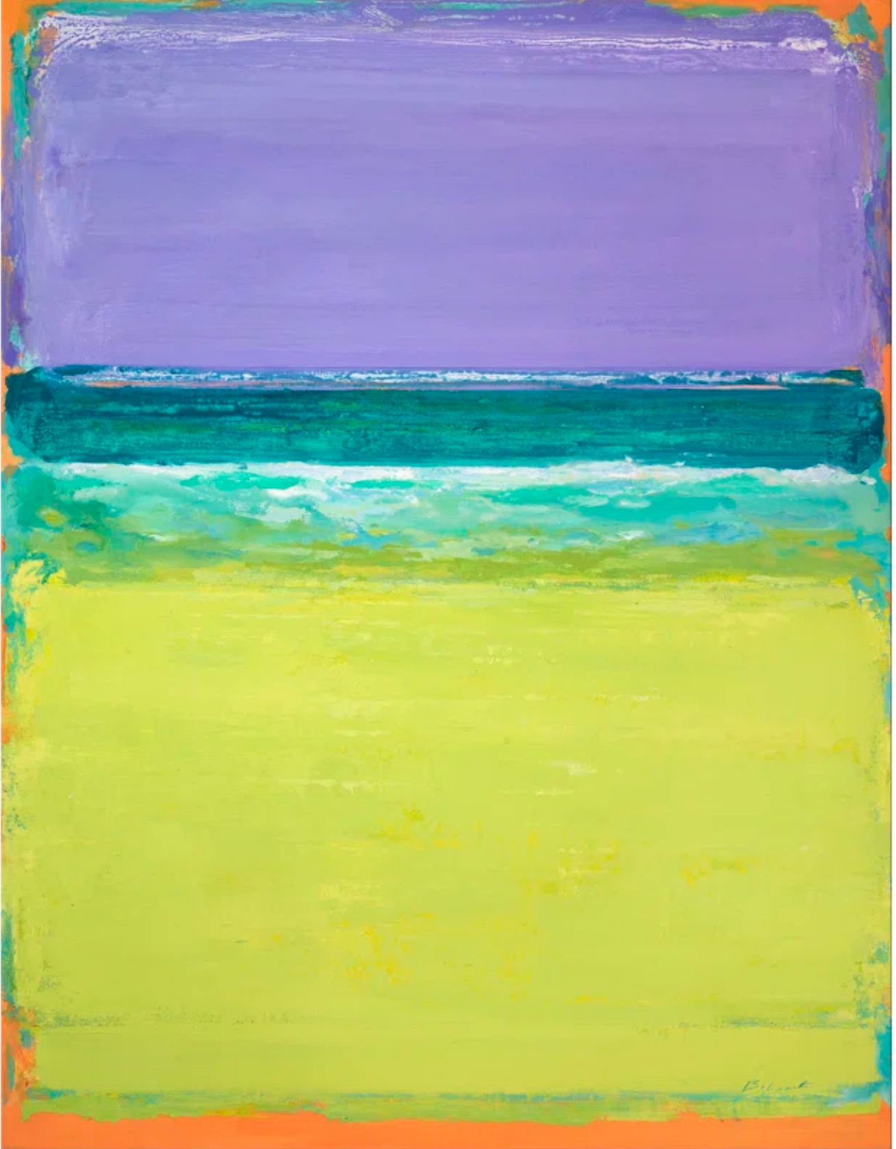 “Key West On Canvas” is a dialogue between the artist and the observer, a narrative spun with the threads of vibrant colors and expressive strokes. The upper expanse, adorned with strokes of soothing purples and blues, instills a sense of calm, reminiscent of the tranquil skies that canopy the serene landscapes. Below, the vibrant greens and yellows burst with energy, embodying the lush, lively terrains, echoing nature’s untampered beauty and vivacity.