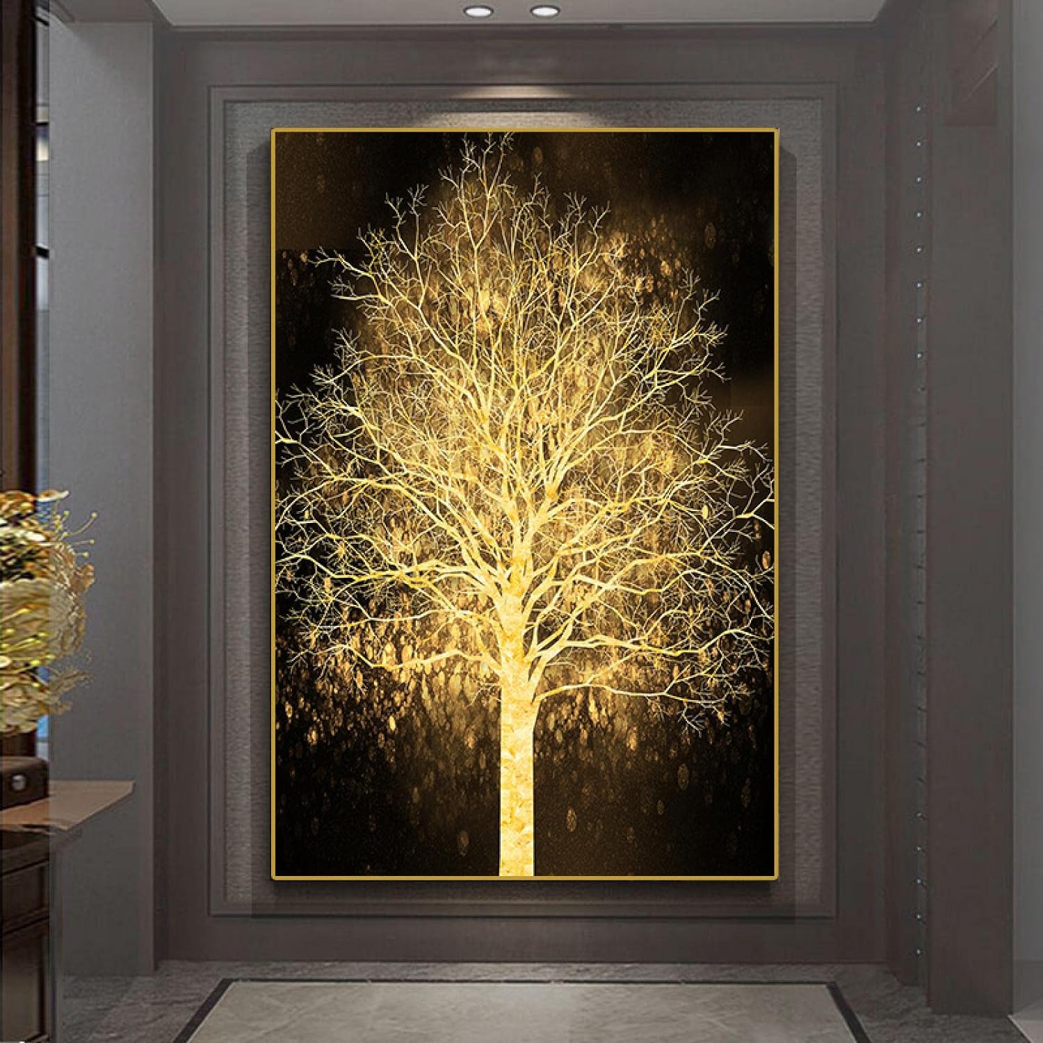 The Golden Luxury Tree Wall Art is printed on high-quality canvas, ensuring durability and vivid color reproduction. The intricate details of the tree, from its delicate branches to its radiant leaves, are captured with remarkable clarity. The golden hues shimmer beautifully, creating a sense of depth and dimension that draws the eye and adds a touch of glamour to your space.