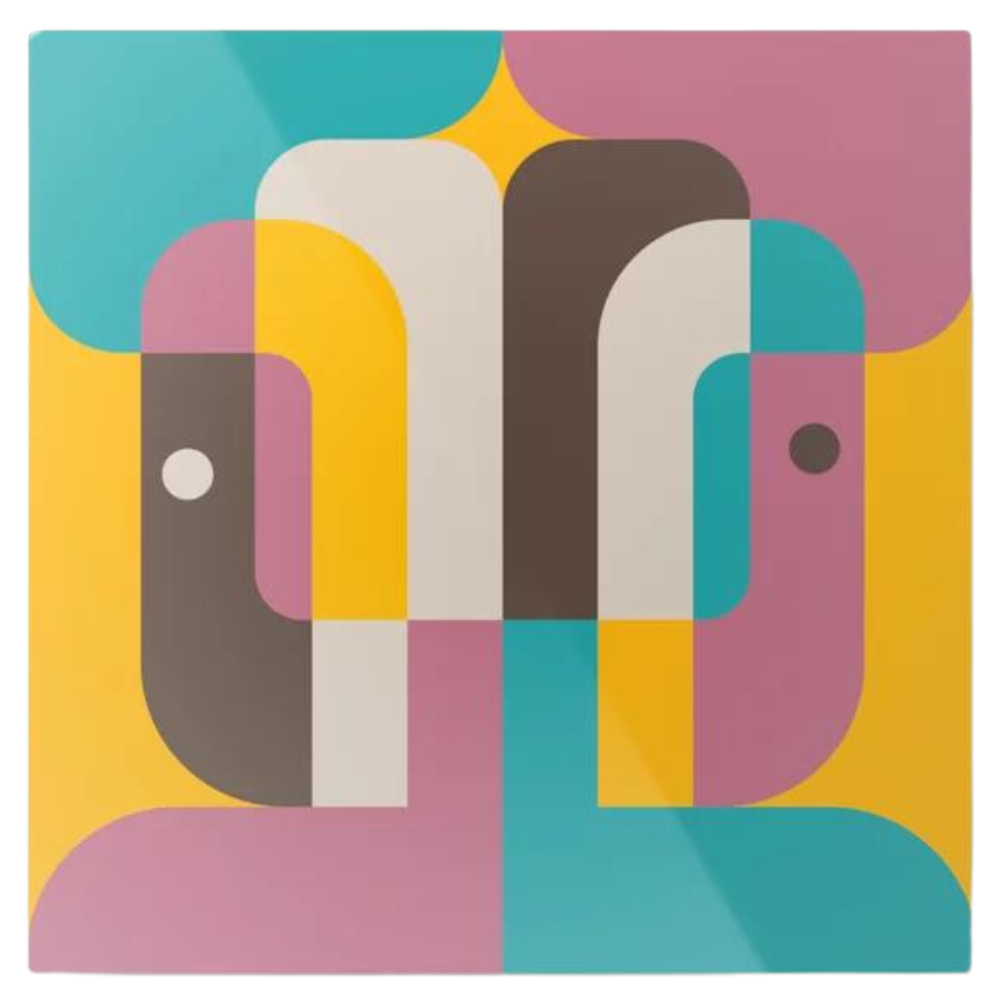 The artist behind this piece has masterfully combined mid-century aesthetics with a modern sensibility, creating a work of art that feels both timeless and fresh. The playful interplay of shapes and colors invites viewers to interpret the design in their own way, making it a conversation starter and a dynamic addition to any room. This piece is perfect for art lovers who appreciate the quirky charm and boldness of mid-century modern design.