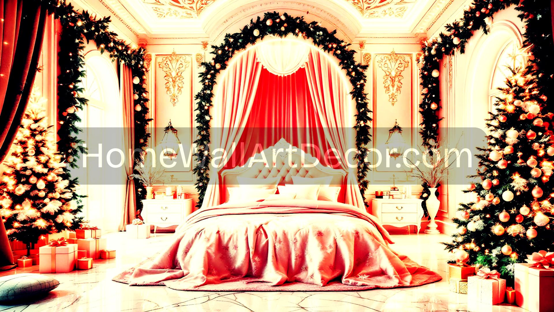 - Wall Art: Print this Pink Christmas Bedroom on canvas or high-gloss paper to create a stunning focal point in your real-life bedroom or living area.
