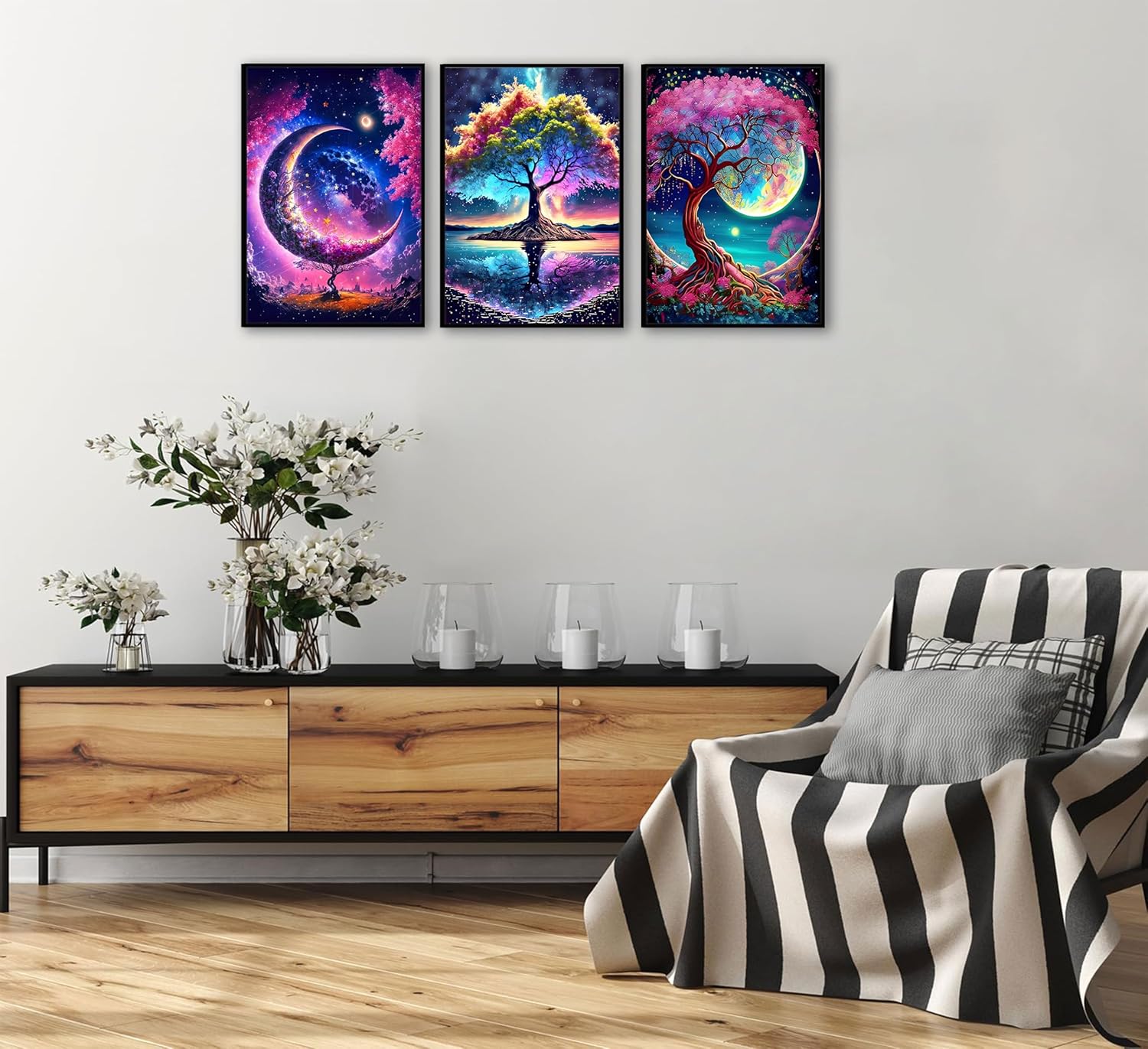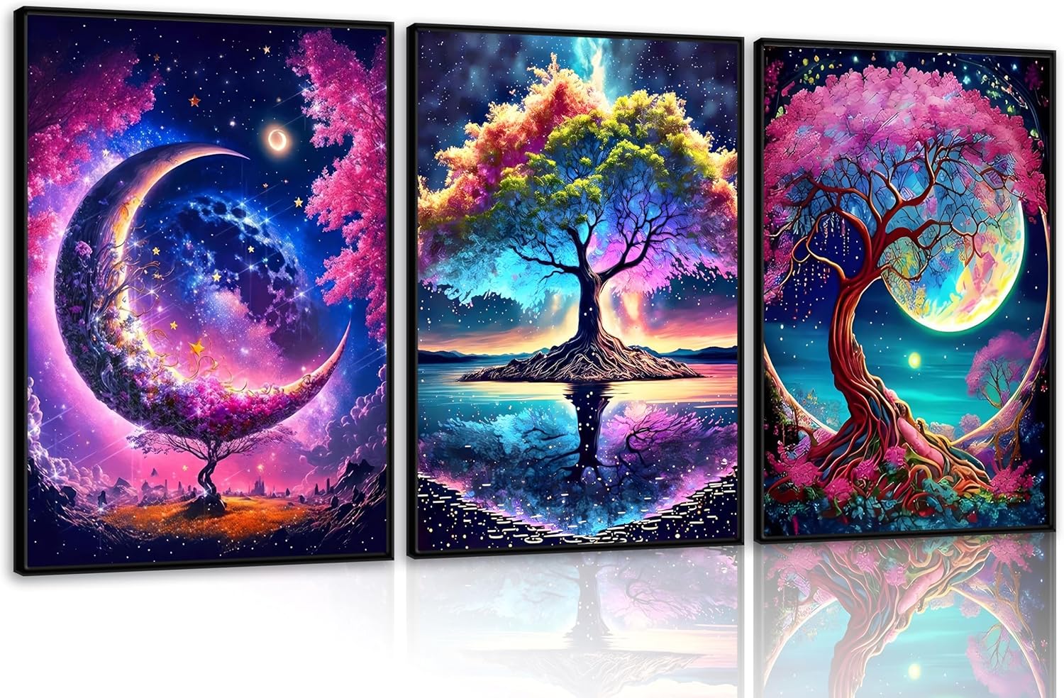 Enhance your living space with the enchanting ‘Tree of Life Wall Art Romantic Starry Night Landscape.’ This captivating artwork features three mesmerizing scenes, each depicting the spiritual tree of life against a backdrop of a starry night. The intricate details and vibrant colors of this wall art piece make it a stunning addition to any room, infusing it with a sense of wonder and tranquility.