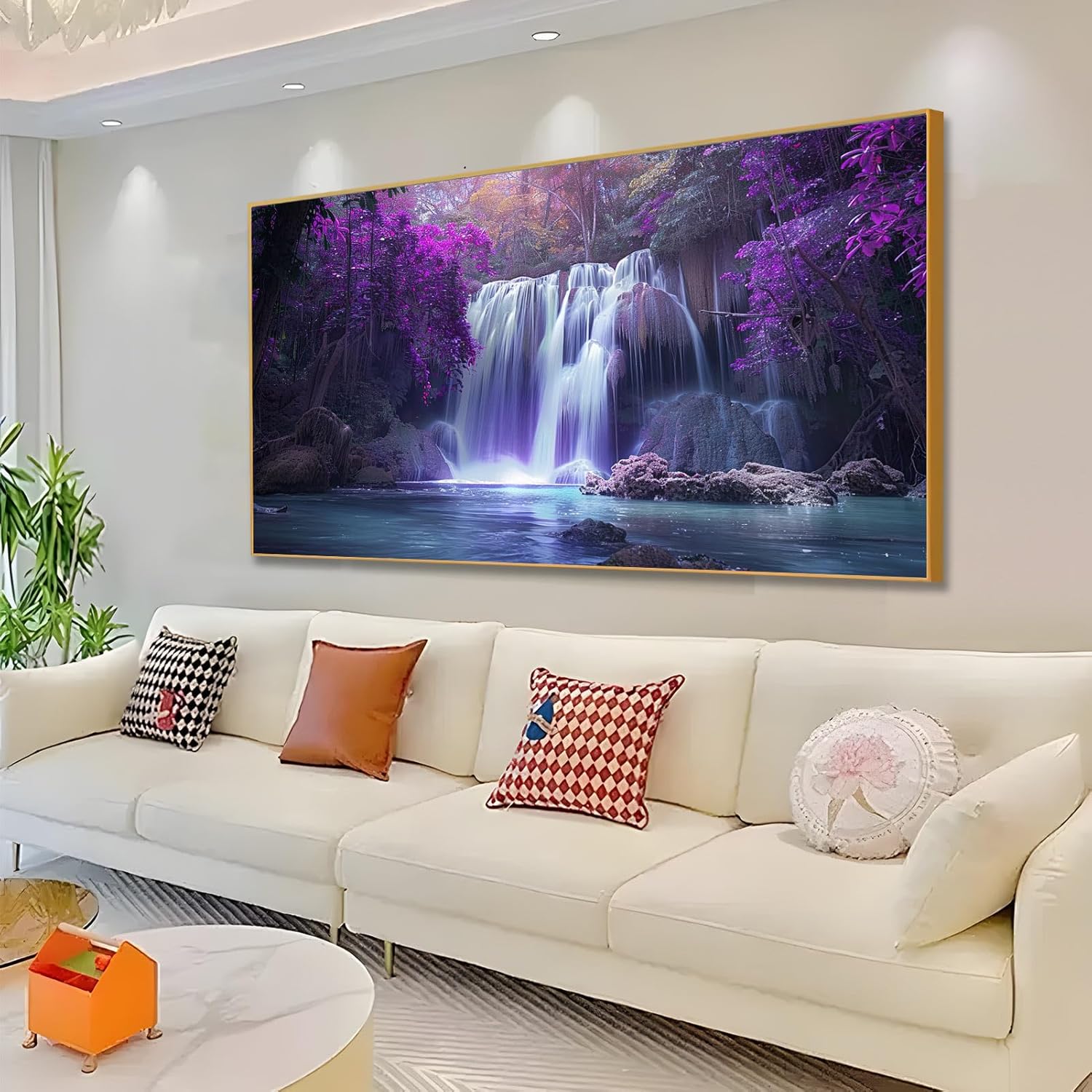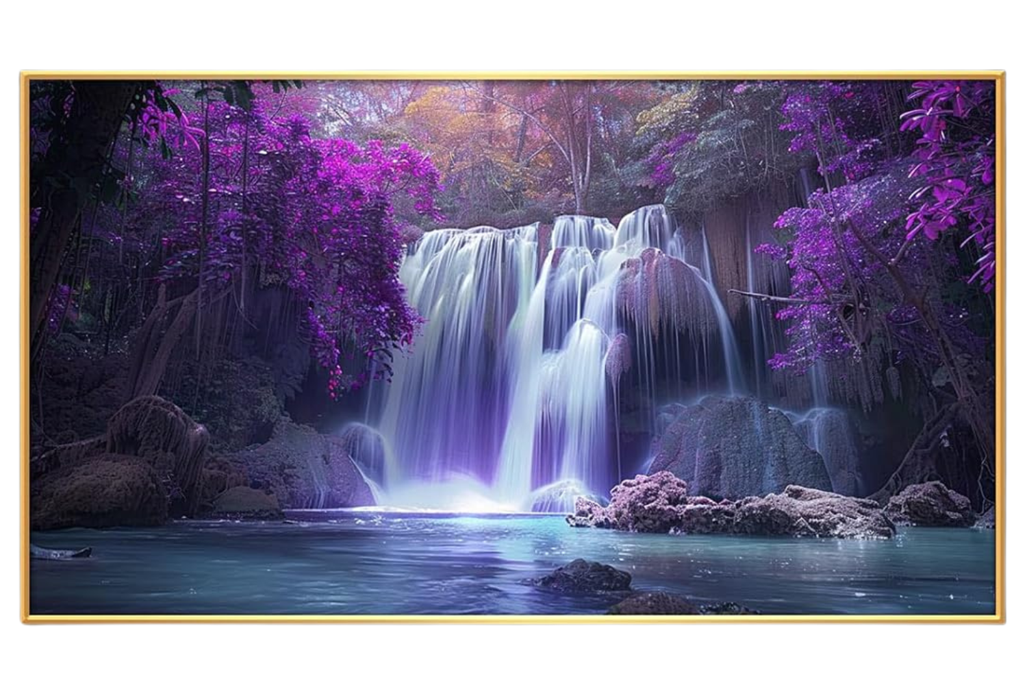 Crafted with high-quality materials, this canvas wall art ensures durability and longevity. The advanced printing technology used enhances the rich colors and intricate details of the artwork, making the scene come alive. The waterfall appears to be in motion, with the water cascading down the rocks and creating a soothing ambiance. The purple trees add a touch of magic and fantasy, transforming the natural landscape into an otherworldly paradise.