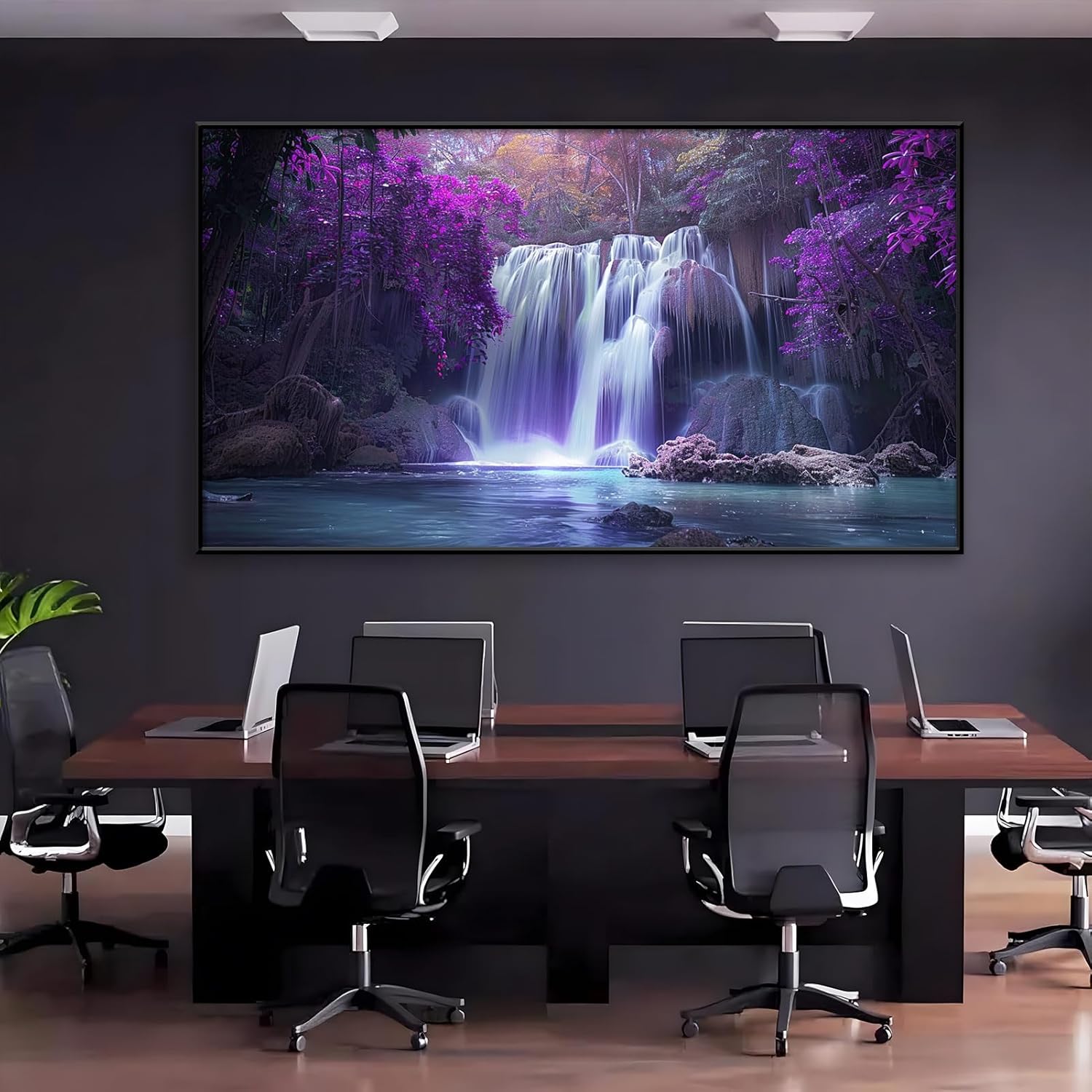 Transform your living space into a serene oasis with our Waterfall Canvas Wall Art featuring hypnotic purple trees. This stunning piece of wall art captures the breathtaking beauty of a cascading waterfall set amidst a mystical forest of vibrant purple trees. The combination of the tranquil waterfall and the enchanting hues creates a mesmerizing visual experience that brings a sense of peace and tranquility to any room.