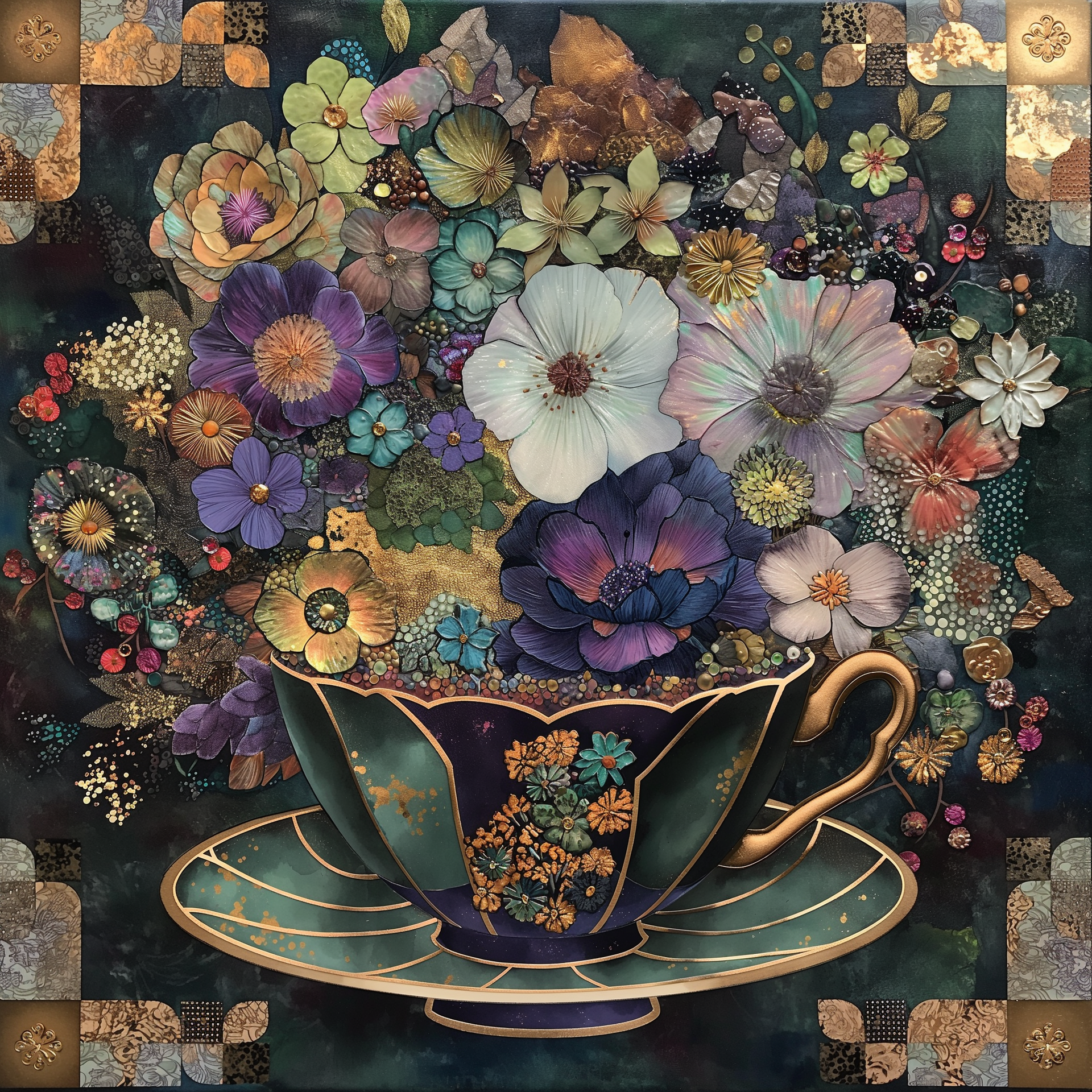 Introducing “Whimsical Floral Teacup Wall Art by Pamela Arsena,” a stunning piece of Teacup Wall Art that brings a delightful blend of elegance and whimsy to your home. This exquisite artwork features a beautifully detailed teacup overflowing with a vibrant array of flowers, meticulously crafted to capture the intricate beauty of each bloom. The rich, luminous colors and intricate design create a mesmerizing effect that will captivate anyone who sees it.