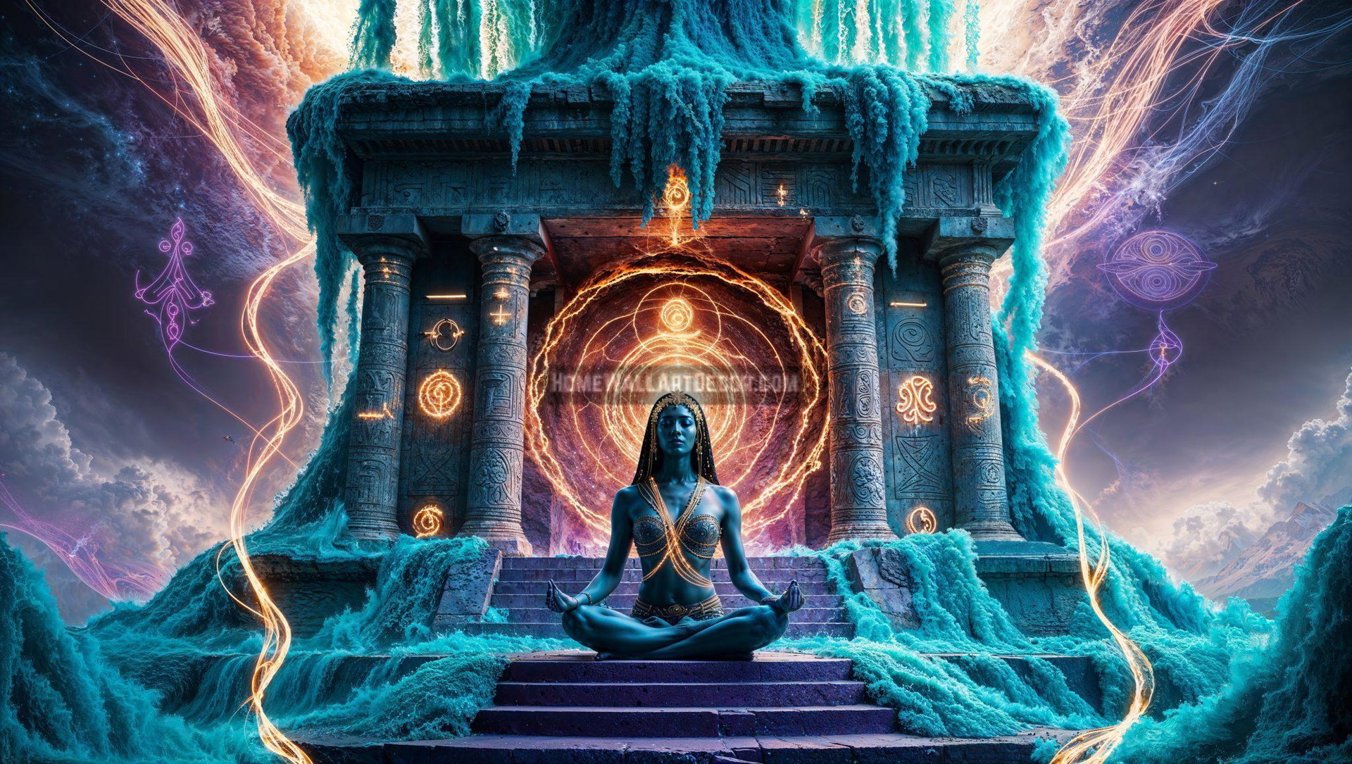 Designed for those who embrace spirituality and mystical aesthetics, this wall art effortlessly complements Bohemian, Moroccan, and modern interiors. The cascading blue waves and glowing golden energy radiating from the temple create a mesmerizing focal point, making it perfect for meditation rooms, bedrooms, or creative workspaces.