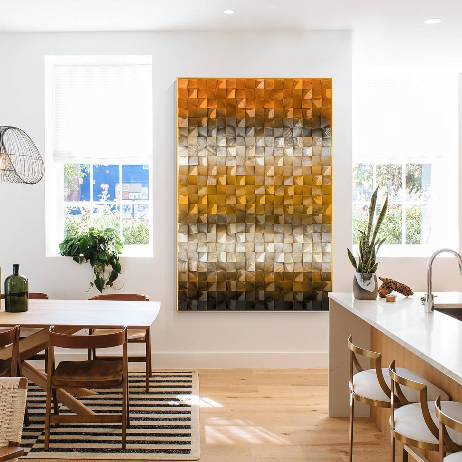 Crafted from high-quality wood, this mosaic wall art is designed to be both durable and visually striking. Each piece of wood is carefully selected and arranged to create a harmonious blend of colors and textures, resulting in a unique and captivating artwork. The natural wood grain adds an organic touch, enhancing the overall aesthetic and making it a perfect addition to any decor style, from modern to rustic.