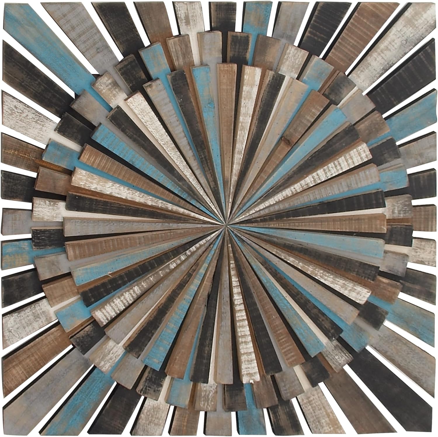 Transform your living space with the Wood Starburst Wall Decor, a piece that perfectly captures the essence of rustic elegance and contemporary design. This Serene Starburst Wall Art is meticulously crafted from high-quality wood, featuring a stunning sunburst pattern that radiates charm and sophistication. The natural wood tones, complemented by subtle hints of blue and white, create a harmonious and calming effect, making it an ideal centerpiece for any room.